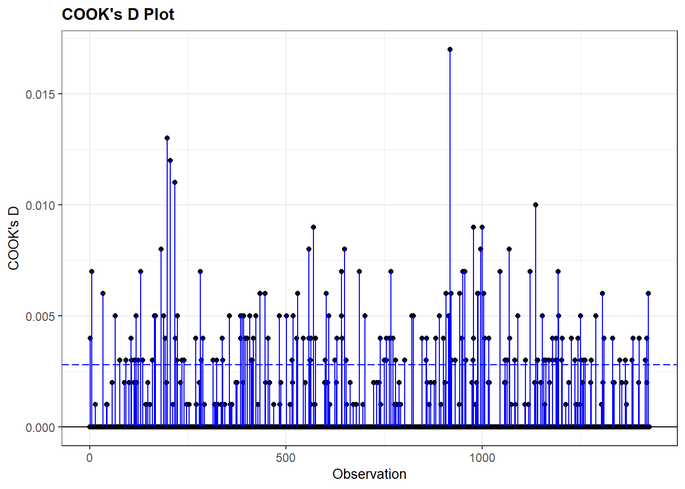 #Summary of the Cook's D values