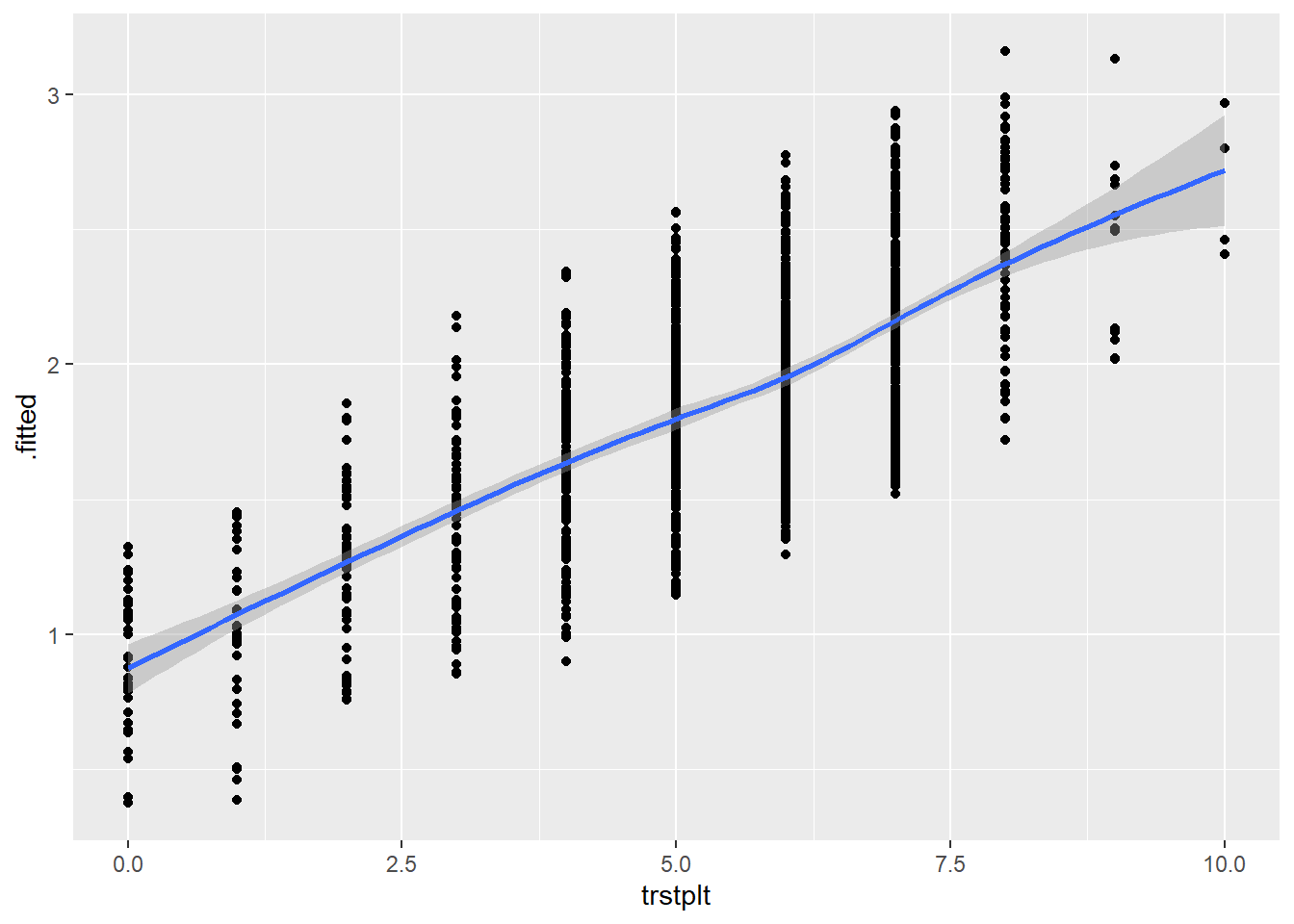ggplot(model4_augmented, aes(x = trstplt, y = .fitted)) +
